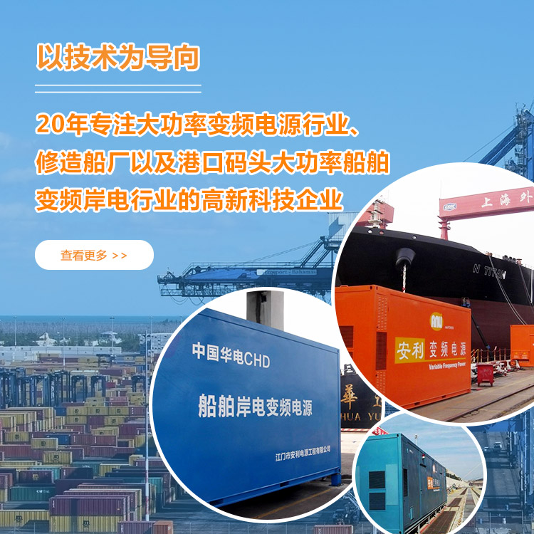 我司是專業(yè)從事大功率變頻電源設(shè)備的研發(fā)設(shè)計(jì)、生產(chǎn)制造、銷售、安裝調(diào)試一條龍服務(wù)的電源設(shè)備工程公司。是一間以技術(shù)為導(dǎo)向,專注大功率變頻電源行業(yè)、修造船廠以及港口碼頭大功率船舶變頻岸電行業(yè)的國(guó)家級(jí)高新技術(shù)企業(yè)。公司本著“專業(yè)、專心、專注、專一”的精神,提供技術(shù)先進(jìn)、性能可靠的大功率變頻電源設(shè)備系列產(chǎn)品及提供完整的大功率變頻電源解決方案及工程安裝服務(wù)。